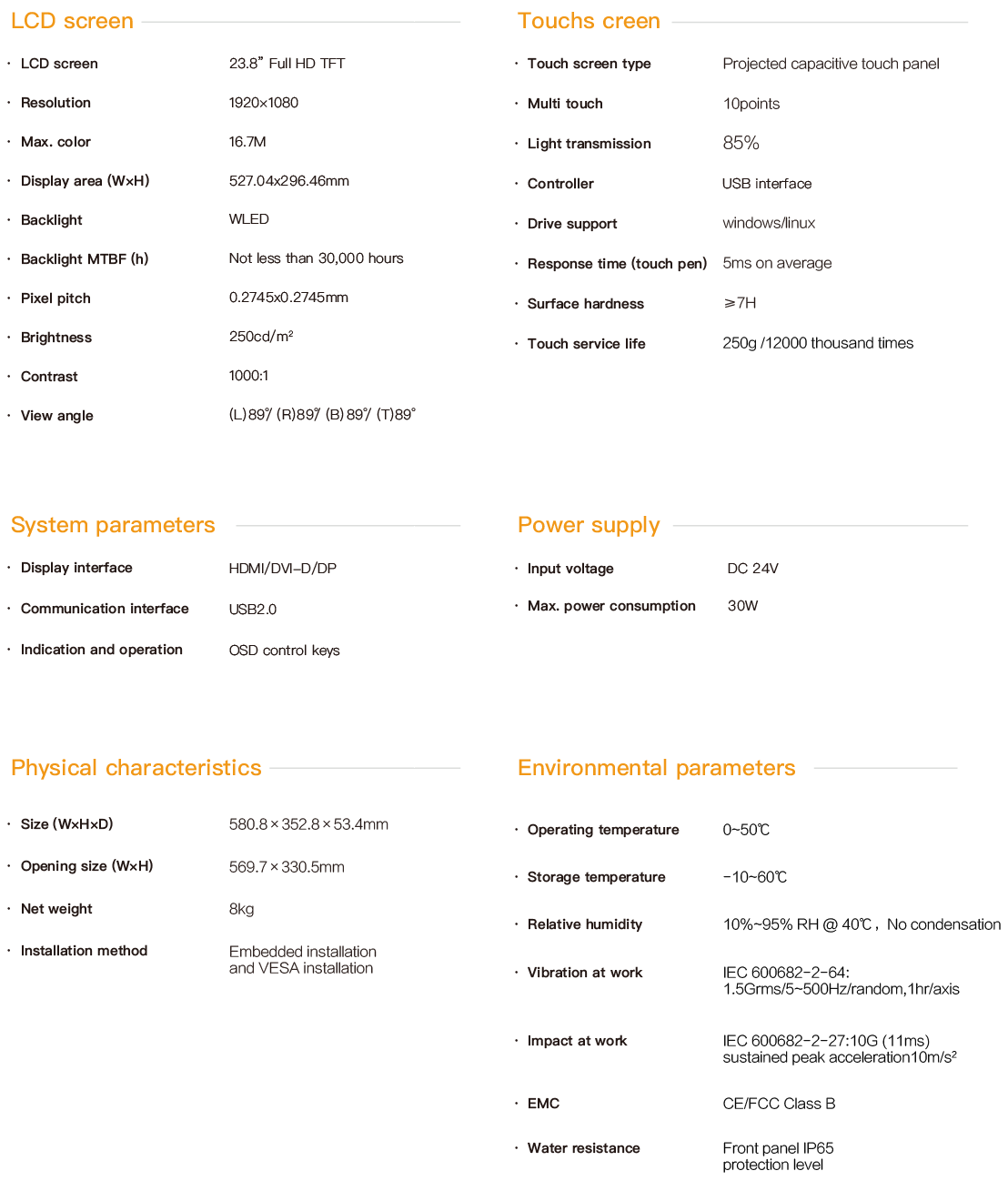 Product > PD series embedded industrial touch panel > 23.8-Inch Industrial Touch Panel > PD-8823