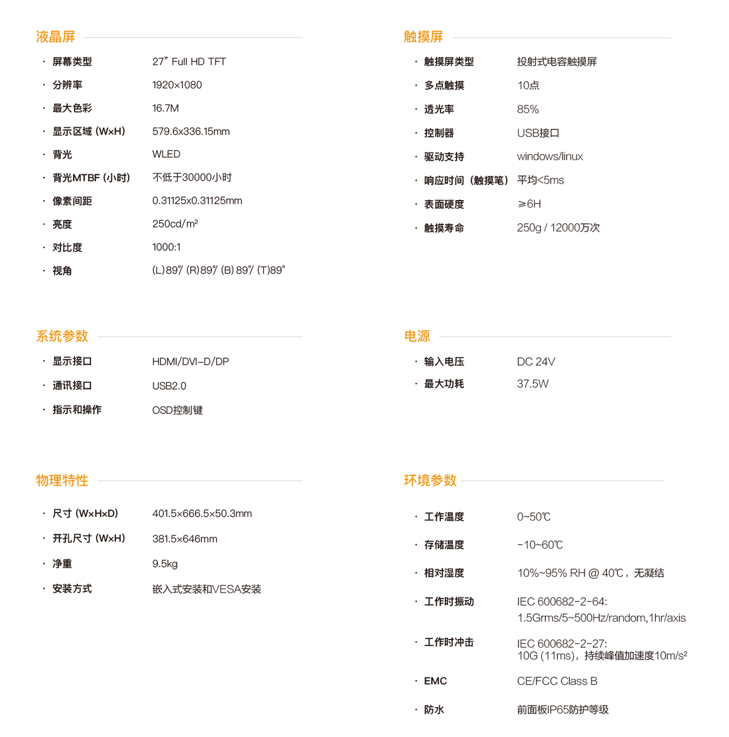 产品咨询 > PD系列嵌入式触控面板 > 27寸工业触控面板 > PD-8827