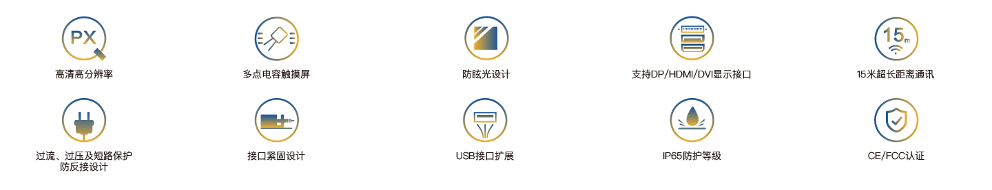 SPD-1900是一款嵌入式超薄型工业触控面板,配备18.5寸分辨率为1920×1080的高清液晶显示屏、投射式多点电容触摸屏,支持HDMI、DVI、DP三种信号传输接口和多个USB接口扩展,PC与触控面板最远通讯距离可达15米,整机DC24V供电,前面板IP65防护等级,接口全部采用紧固设计,且通过CE/FCC认证,可适用于严苛的人机交互工业现场。