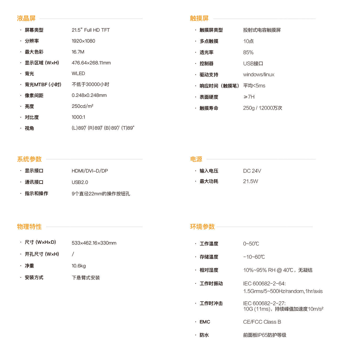 产品咨询 > PDX系列下悬臂触控面板 > 21.5寸下悬臂式触控面板 > PDX-3821