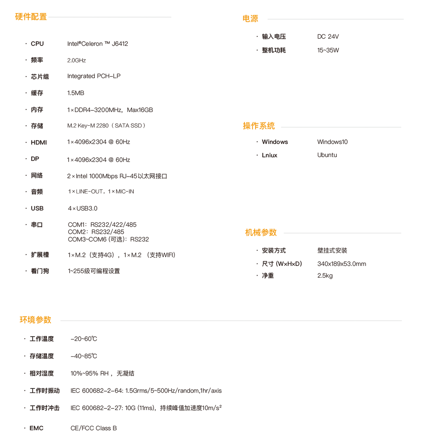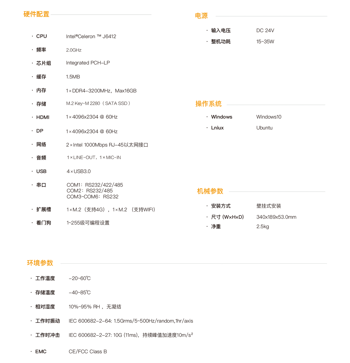 EPC-1662是一款基于Intel®Celeron®J6412高性能处理器的无风扇工业计算机。外部支持HDMI和DP同步和异步双显,产品配备了丰富的 I/O接口。产品外形设计精巧兼具强固性,大面积的铝鳍设计快速将处理器热量散发,无风扇和全封闭的结构有效的防止粉尘进入,保证产品在恶劣的工业环境下长时间可靠的运行。
