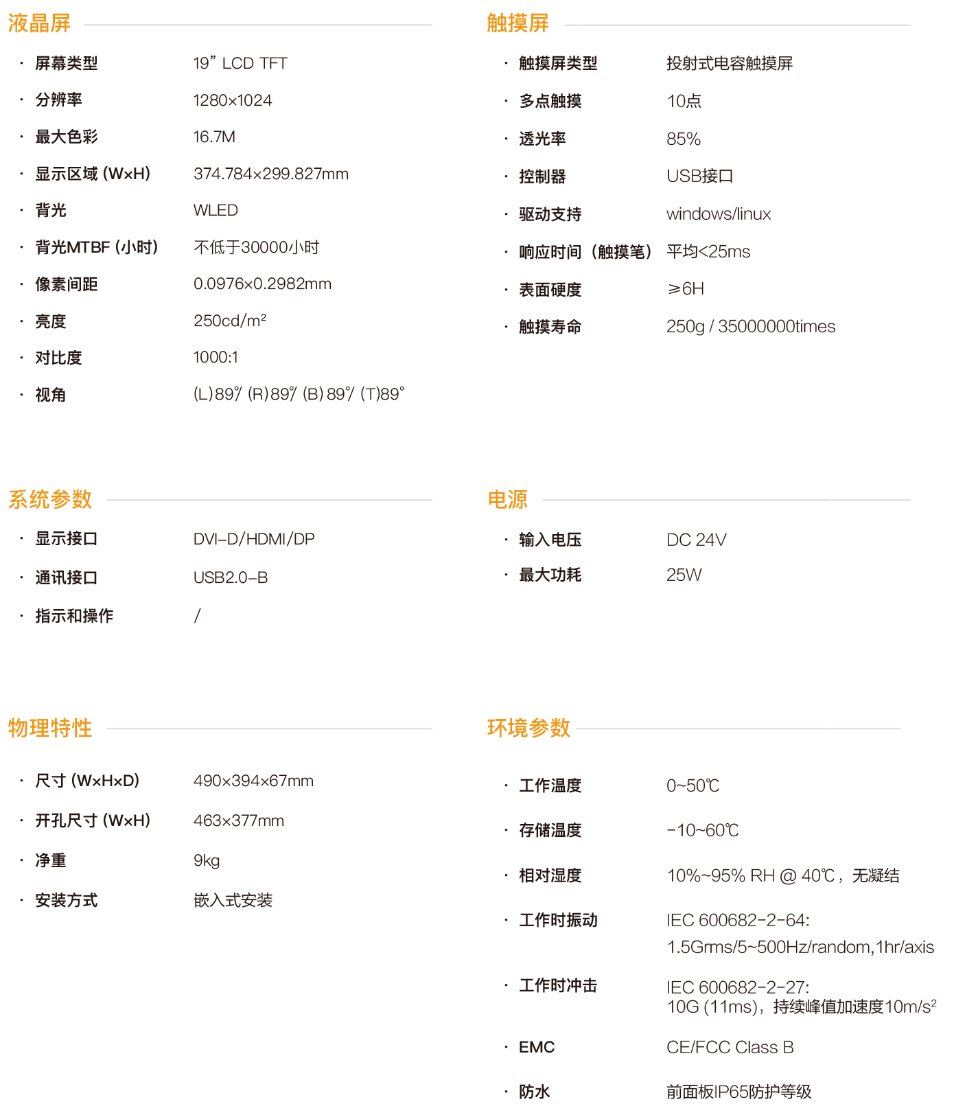 19寸工业触控面板